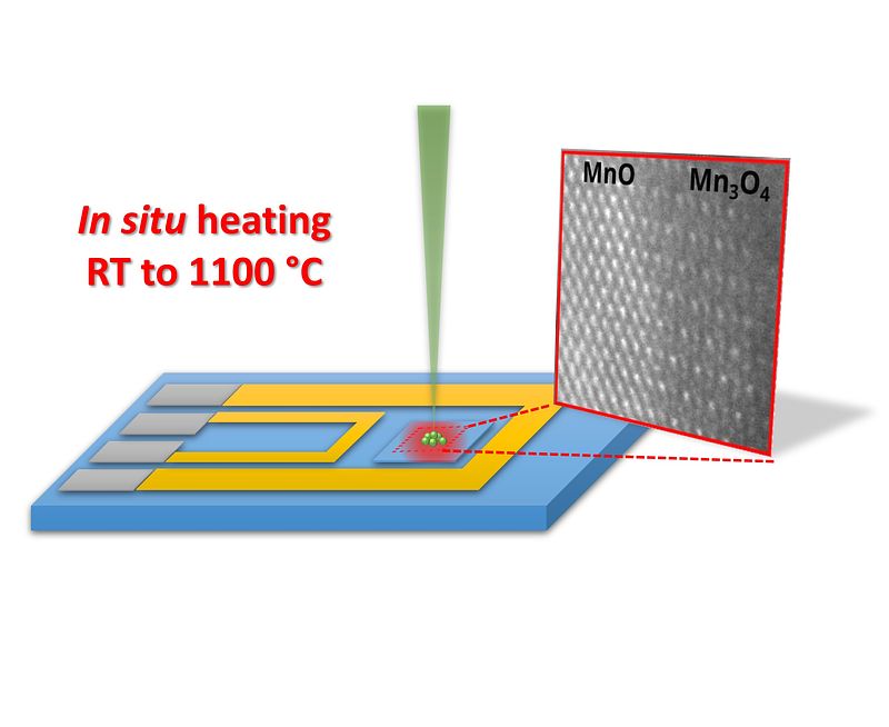 Abstract: Manganese is an attractive element for sustainable solutions. It is largely available in the earth's crust, making it ideal for cost-effective and large-scale applications. Especially MnO nanoparticles have recently received attention for applications in battery technology. However, manganese has many oxidation states that are energetically very similar, indicating that they may easily transform from one to the other. Herein, the reversible oxidation of MnO nanoparticles to Mn3O4 studied with in situ transmission electron microscopy is shown. The oxygen sublattices of MnO and Mn3O4 are found to be perfectly aligned, and an atomic mechanism where the transformation is facilitated by the migration of Mn cations on the shared O sublattice is proposed. Even when protected with an amorphous carbon layer, MnO particles are highly unstable and oxidize to Mn3O4 in ethanol. The poor stability of MnO lacks discussion in many battery-related works, and strategies aimed at avoiding this should be developed.
